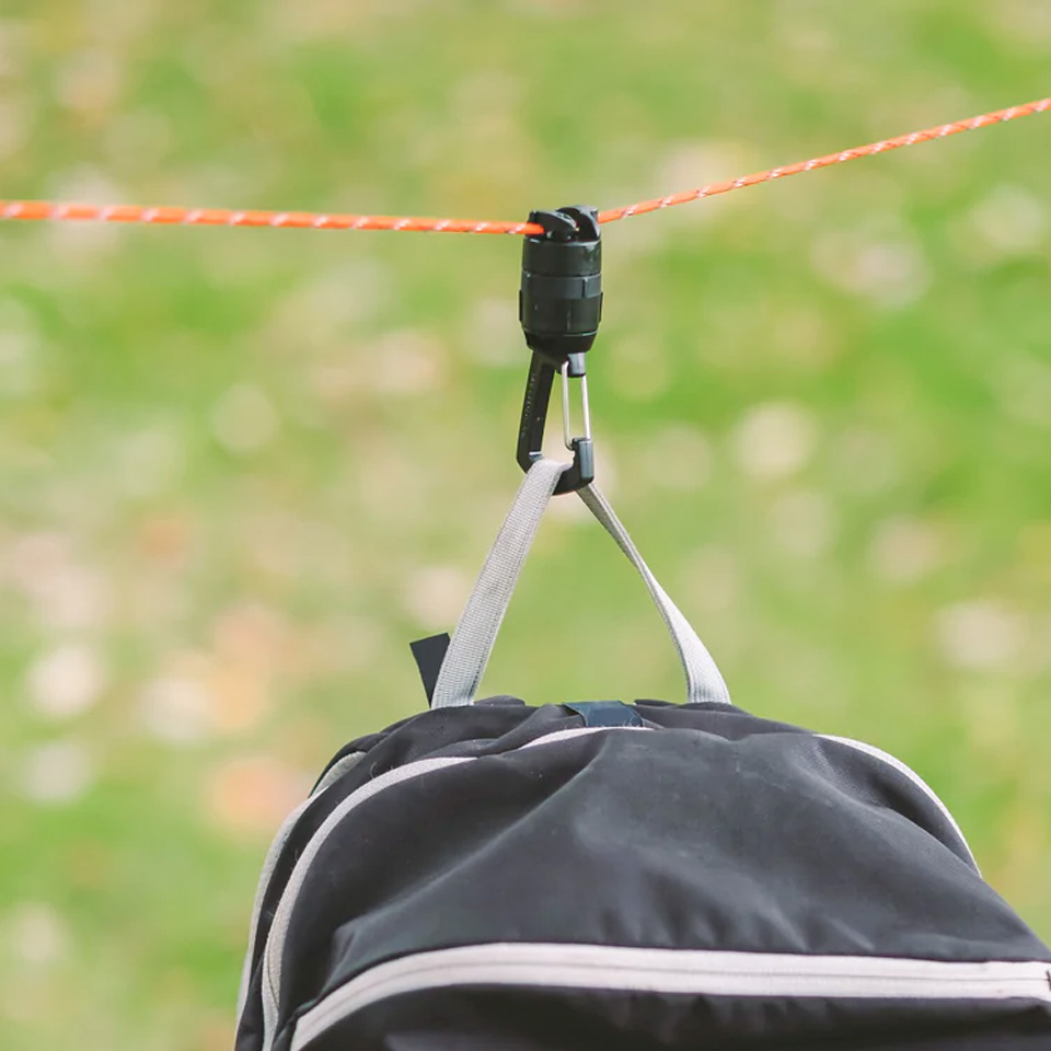 テントやハンモック上のラインに吊るして、ハンズフリー照明として使用したり、ウェビングアダプターを使用してバックパックストラップに取り付けることもできます。