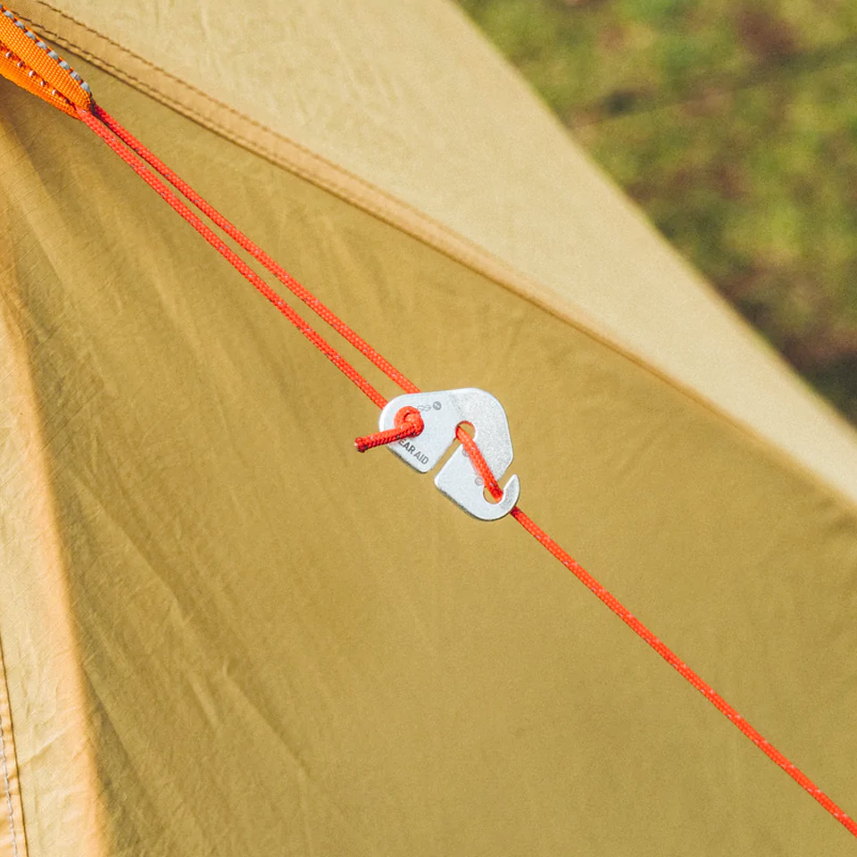 Reflective Guyline Kitはキット全体が71gと軽量で、15mのガイラインと4つのミニラインテンショナーが含まれており、キャンプの負荷を軽くします。