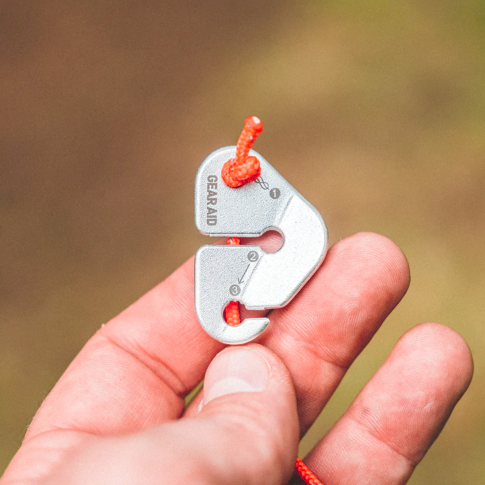 1つの止め結びを結ぶだけで、使いやすく、2mmのコードおよびガイラインにフィットします。