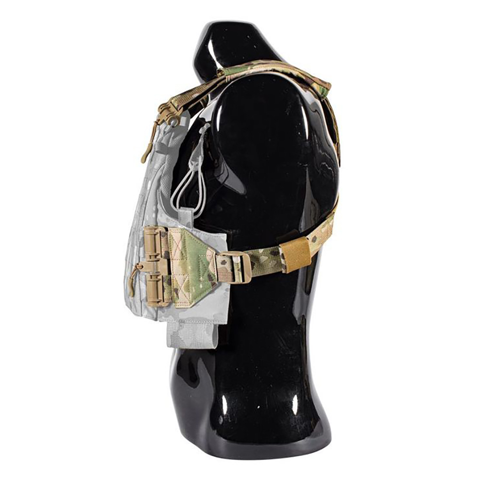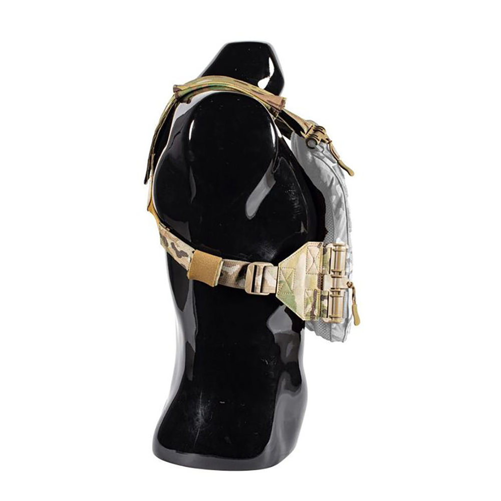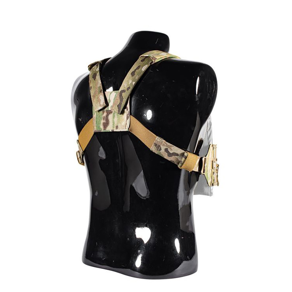 このハーネスは、FS AACシリーズのプレートキャリアやStrandhoggに対応するように設計されており、素早くチューブで固定することで、バックパネルやカマーバンドなしでプレートキャリアのフロント部分を使用することができます。