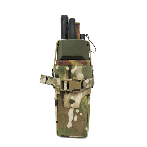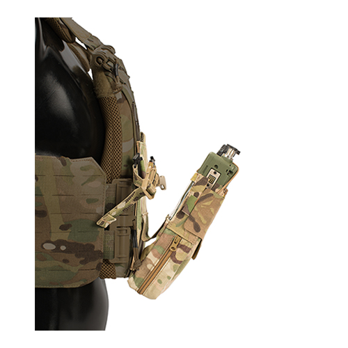 ポーチを装着したままの状態で、周波数表示や入力画面の確認ができるほか、無線機の保持作業も可能です。