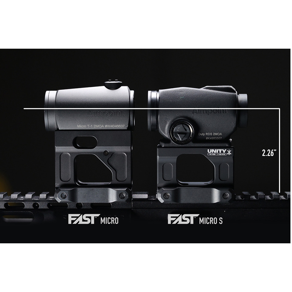 FASTTM Micro-S Mountは Aimpoint CompM5s、CompM5b、Duty RDS を 2.26インチの光学中心線に配置します。