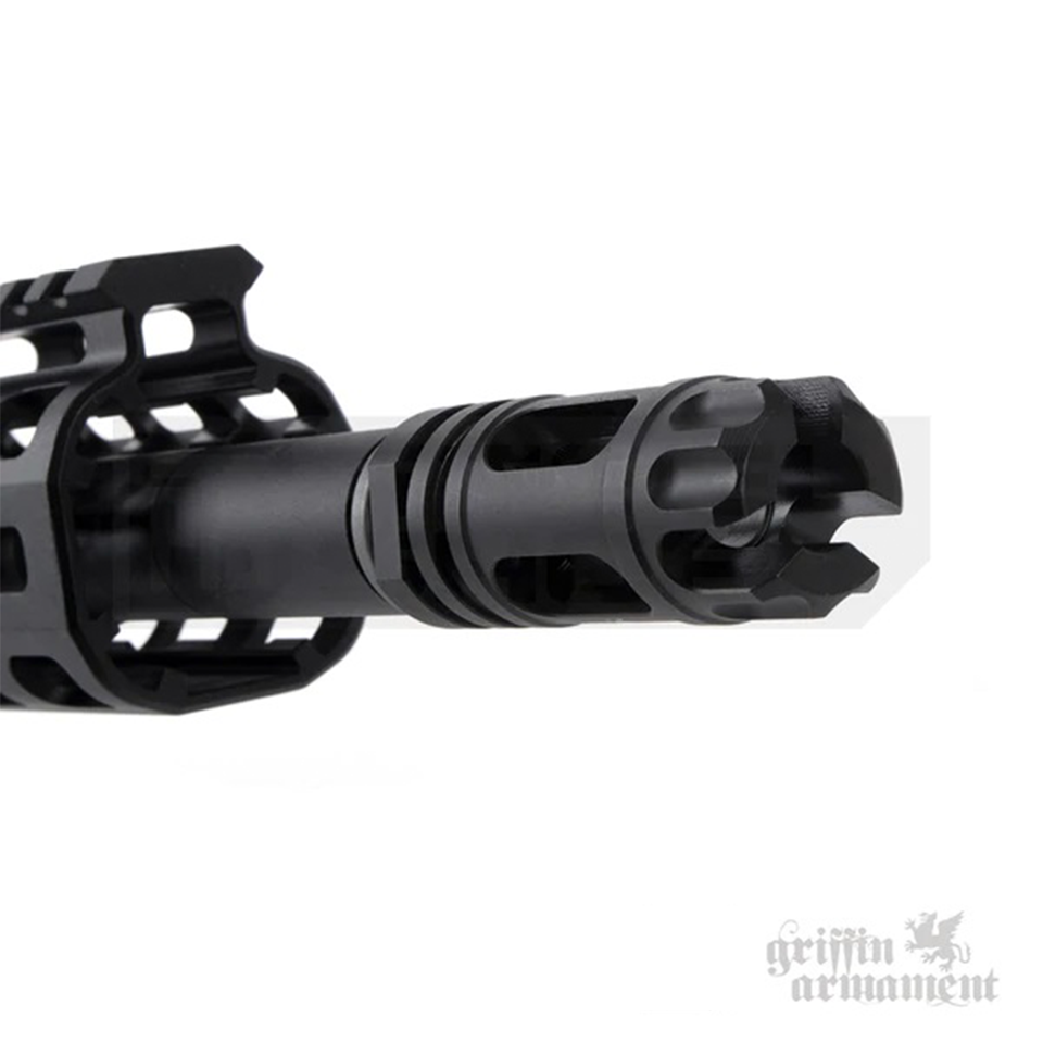 他のグリフィンアーマメントのマズルデバイスと同様に、このエアソフト版はPTSグリフィンアーマメントM4SDサプレッサーを含むA2互換のサプレッサークイックデタッチマウントと互換性があるように設計されています。