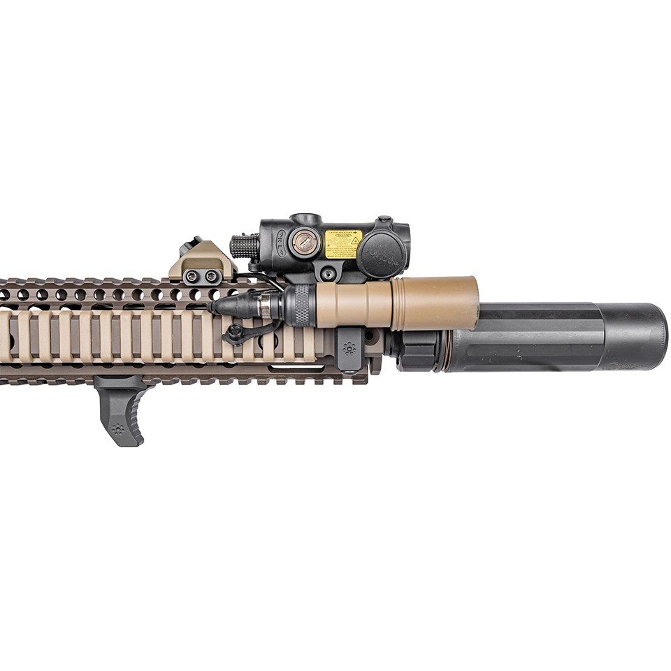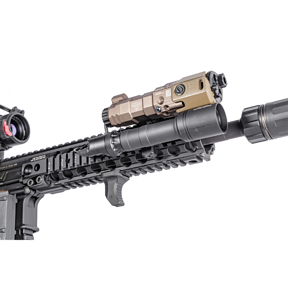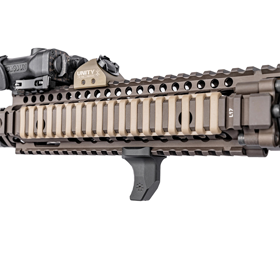 ハンドストップはバリケードストップとして使用することもできますし、逆にハンドガードの前部に取り付けて、サポートハンドが端から滑り落ちるのを防ぐこともできます。