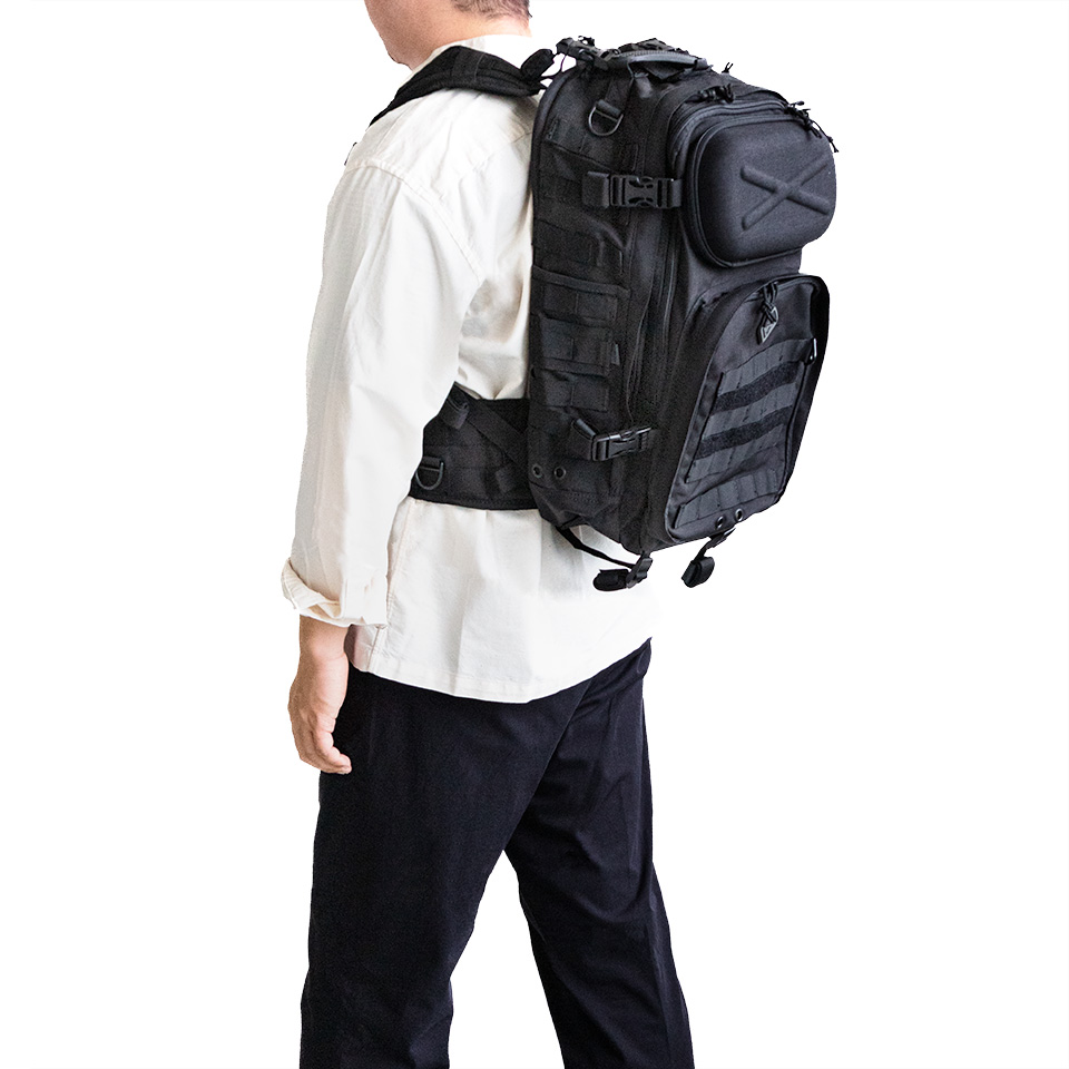 独自構造のハーネスや着脱可能なMOLLEベルトを装備。