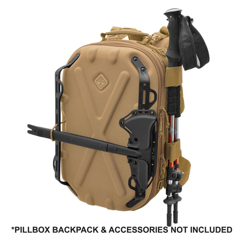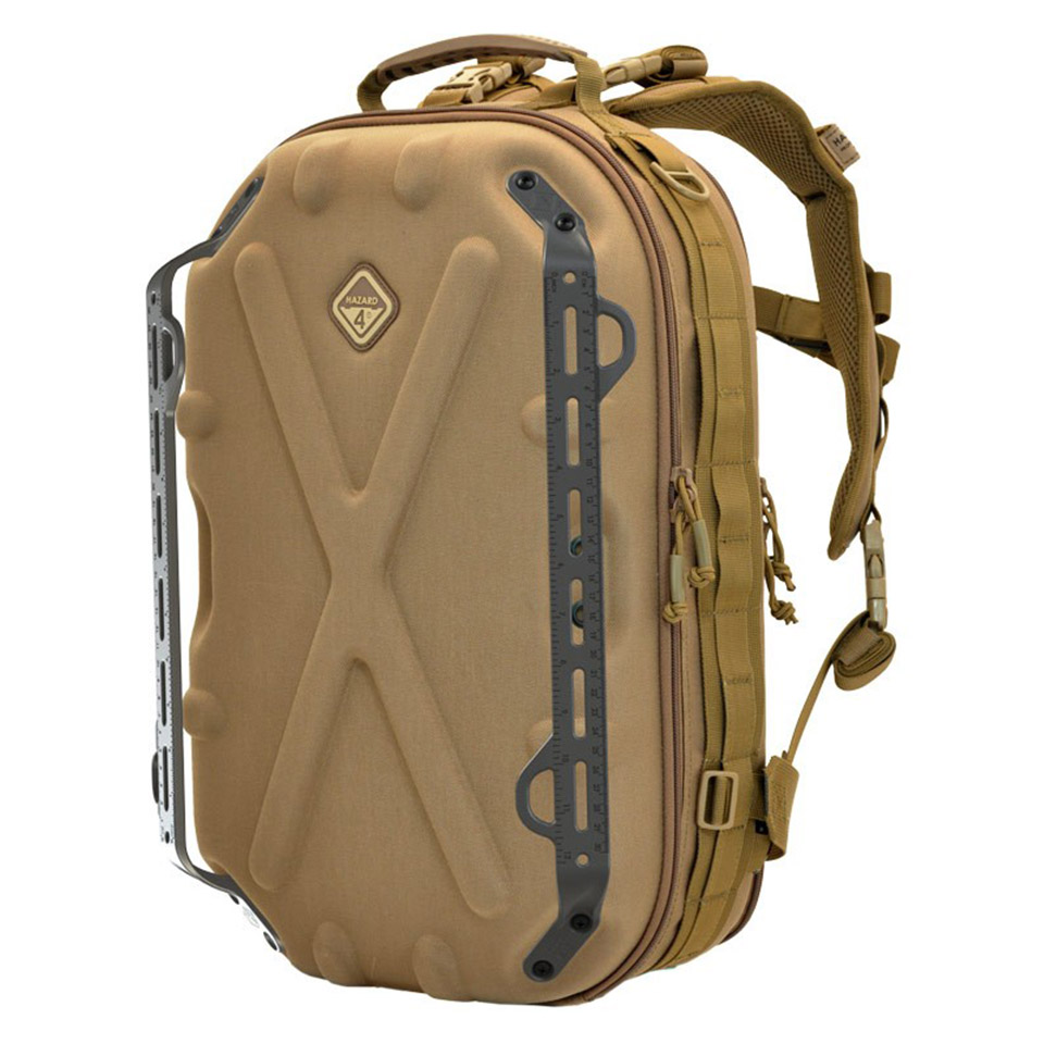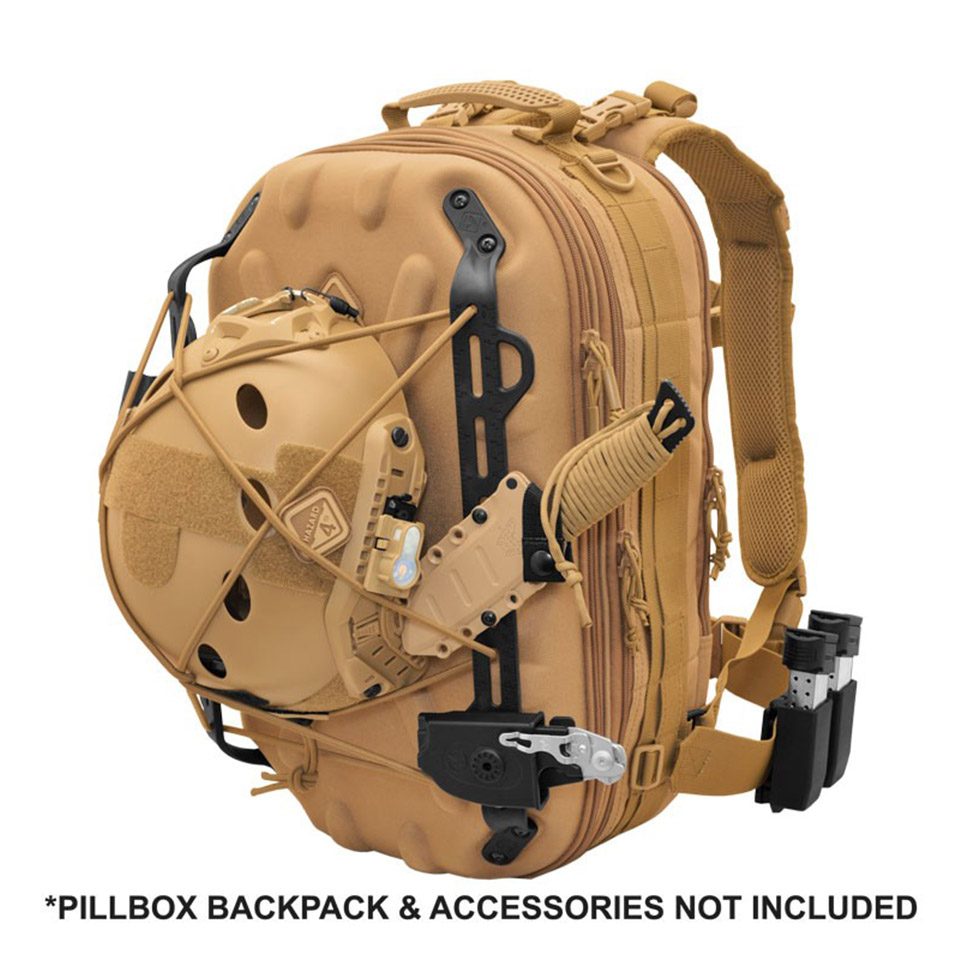 ハードシェルのバックパックにネジ止めし、カイデックス製ナイフシースやマチェーテ、マガジンポーチ、ホルスターなど