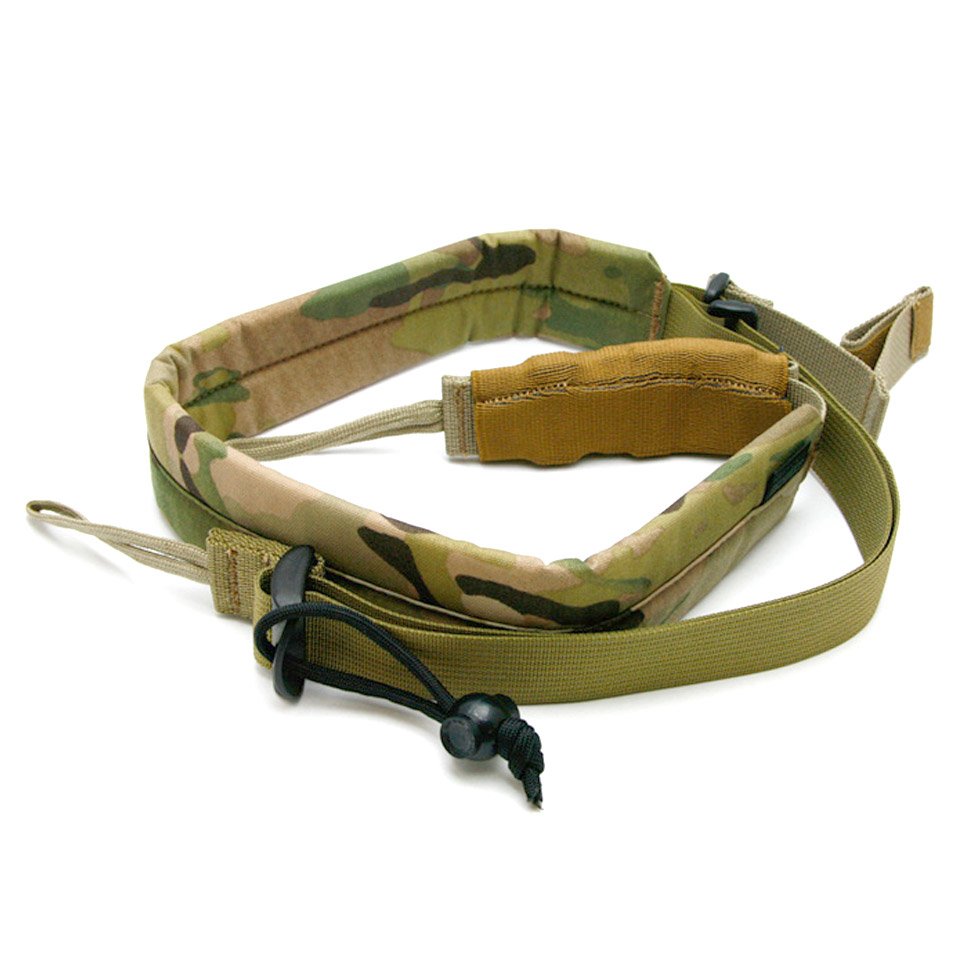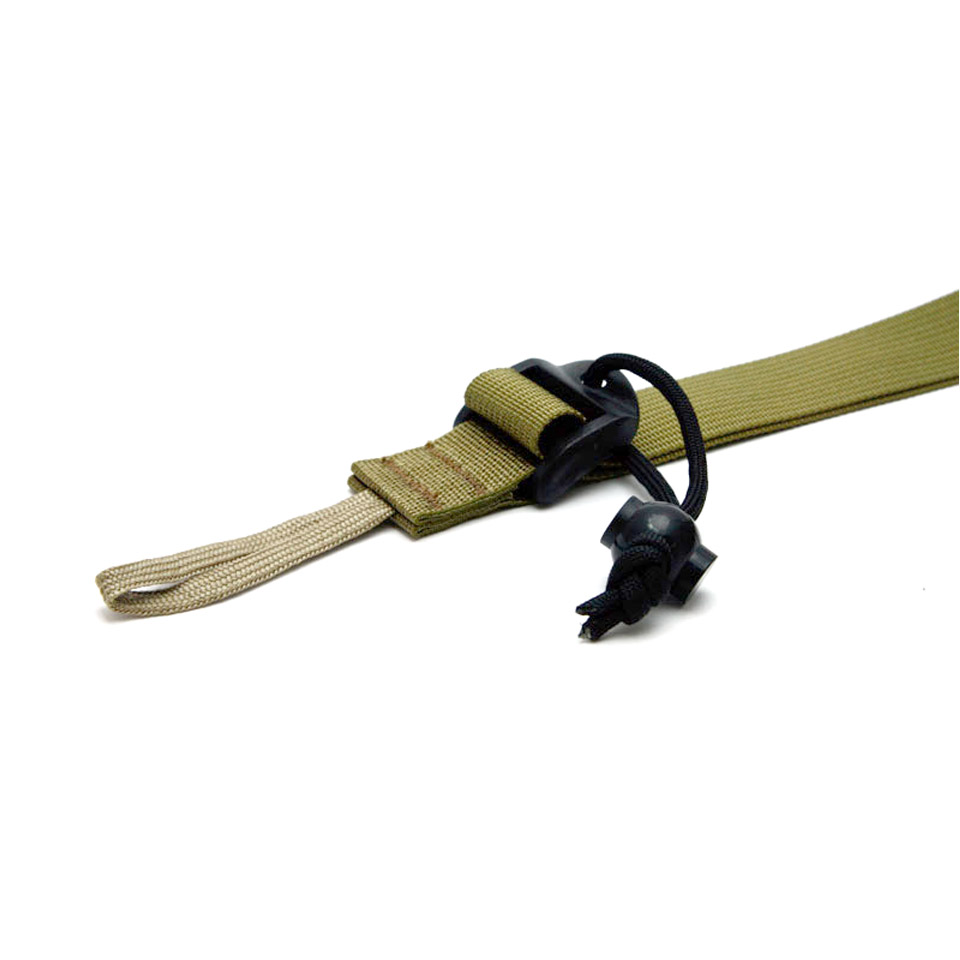 銃器に取り付けられているスリングというアイテムからアイディアを得て作られたこのストラップは、