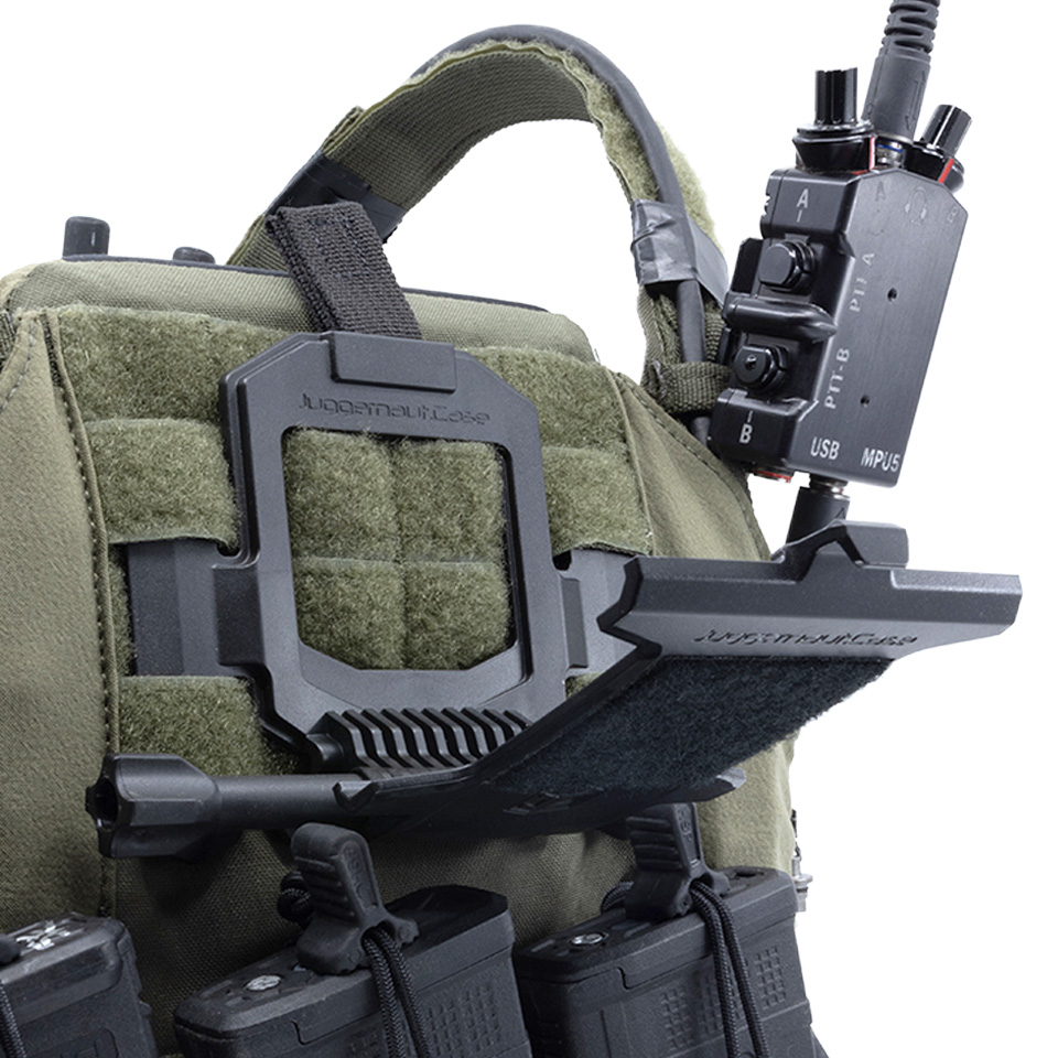 Juggernaut PALSアーマープレートキャリアフォンマウントは、戦場での通信機器の安全な保管と容易なアクセスを必要とするミッションのために設計されており、Juggernautフォンケースとデバイスをプレートキャリアに固定します。
