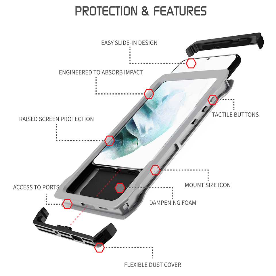 そんな時、Juggernaut.Case™ IMPCT™ Galaxy S21 Ultraフォンケースの頑丈なミリタリーグレードケースが、最過酷環境下に於いてもご使用のスマートフォンを保護し必要な耐衝撃性を提供します。