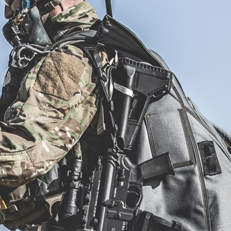 ACSには0.30インチの厚さのラバーバットパッドが標準装備されており、ボディアーマーやモジュラーギアを装着した状態でも肩が滑らないよう、積極的に肩を支えることができます。