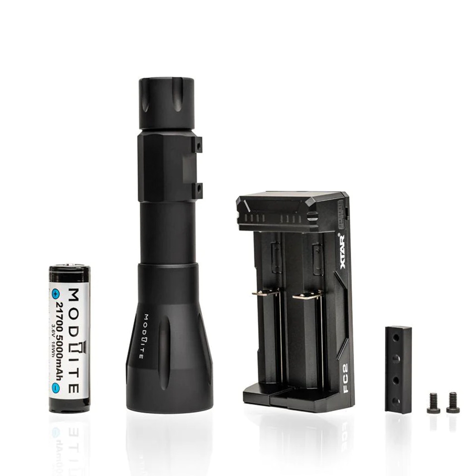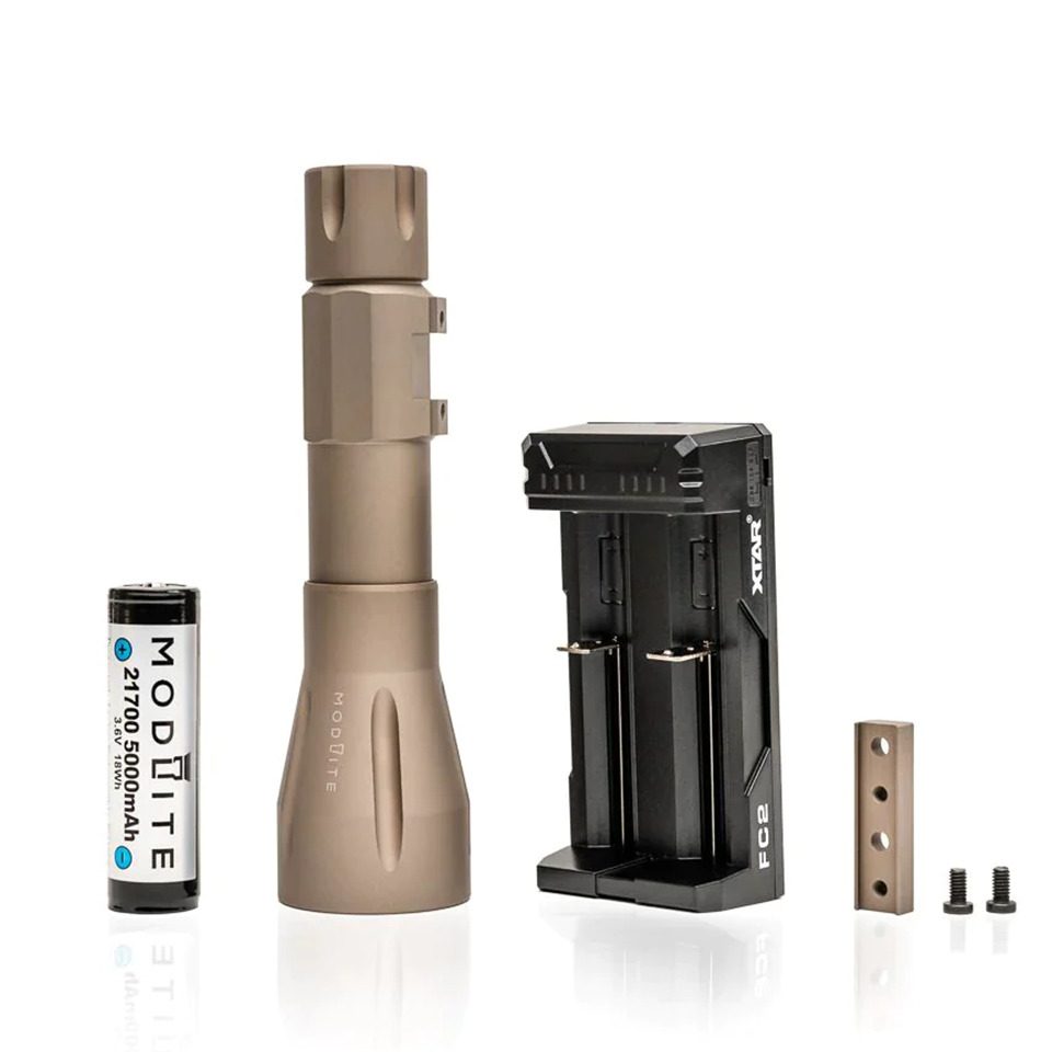 HOG WML packageには、選択したエミッターのライトヘッド、21700 WML ボディ/テールキャップ、Modlite 5000mAh 21700バッテリー、およびXTAR FC2充電器が含まれています。