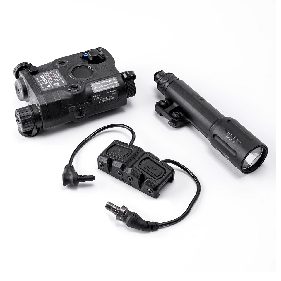 Modlite ModButton Lite を2個取り付けるためのマウントソリューションで、LightおよびLaserプラグモデルに対応しています。