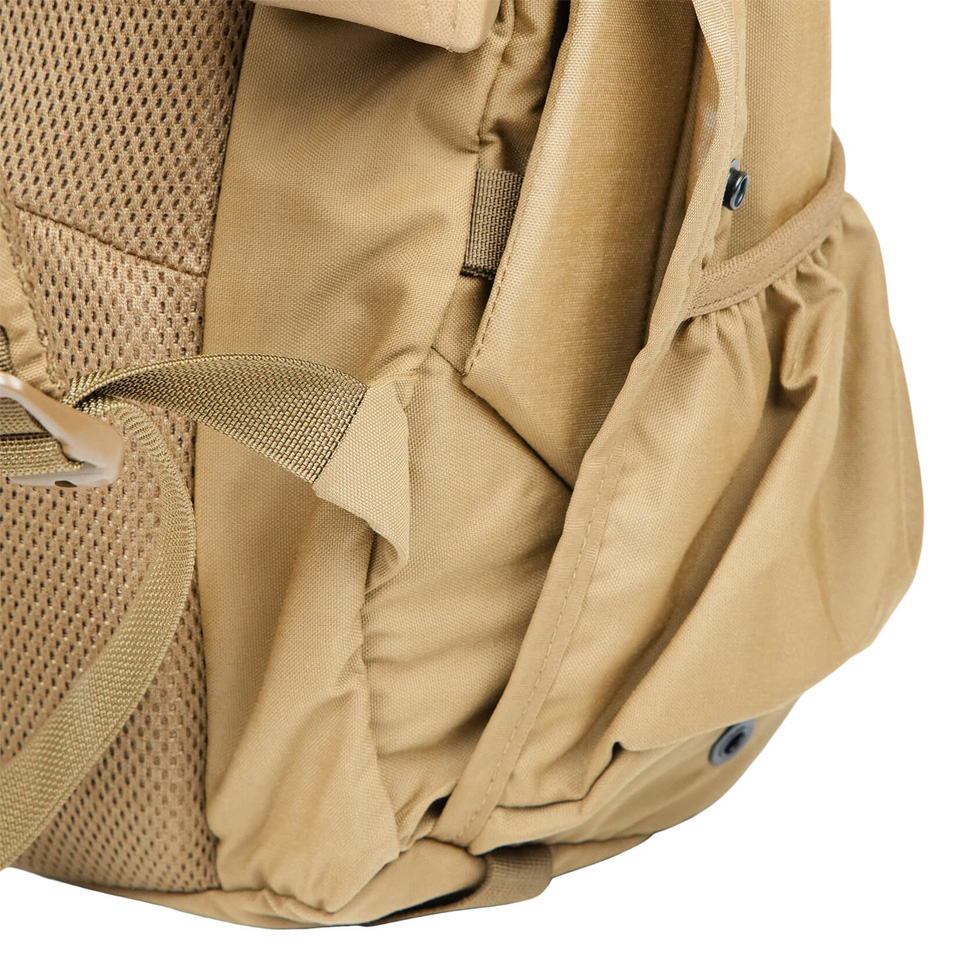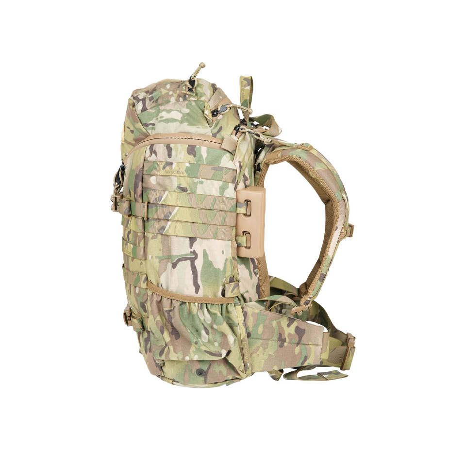 正面と側面にそれぞれ3列のMOLLEウェビングがあり拡張性にも優れます。