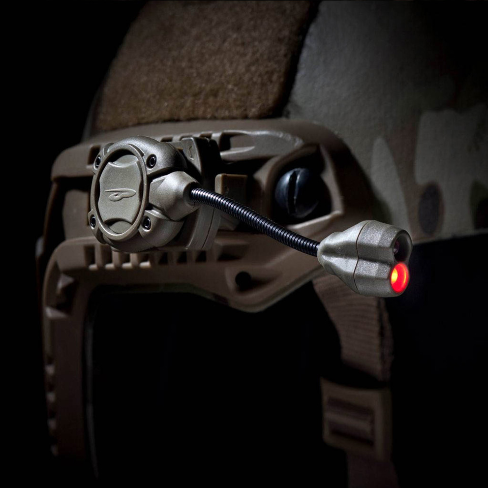 また独自のフレキシブルネックデザインを採用し、ヘルメットの角度にかかわらず、必要な場所にライトを向けることができます。