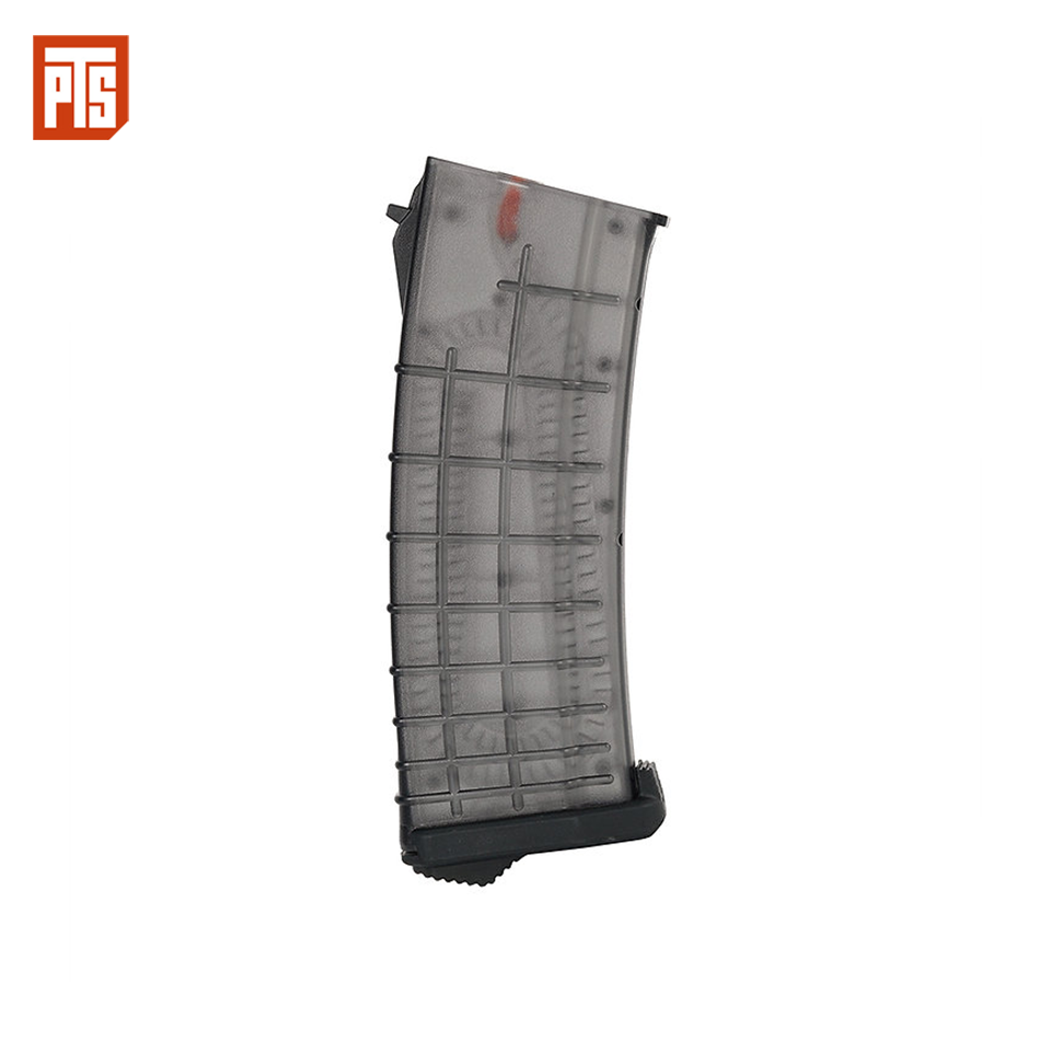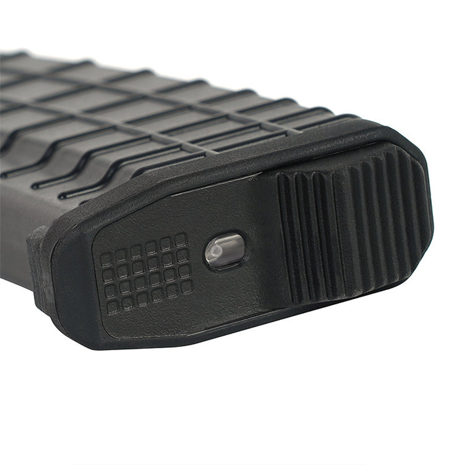 過酷なフィールド環境に耐える半透明の強化ポリマーボディを採用し、マガジン内の残弾を容易に目視確認することができます。