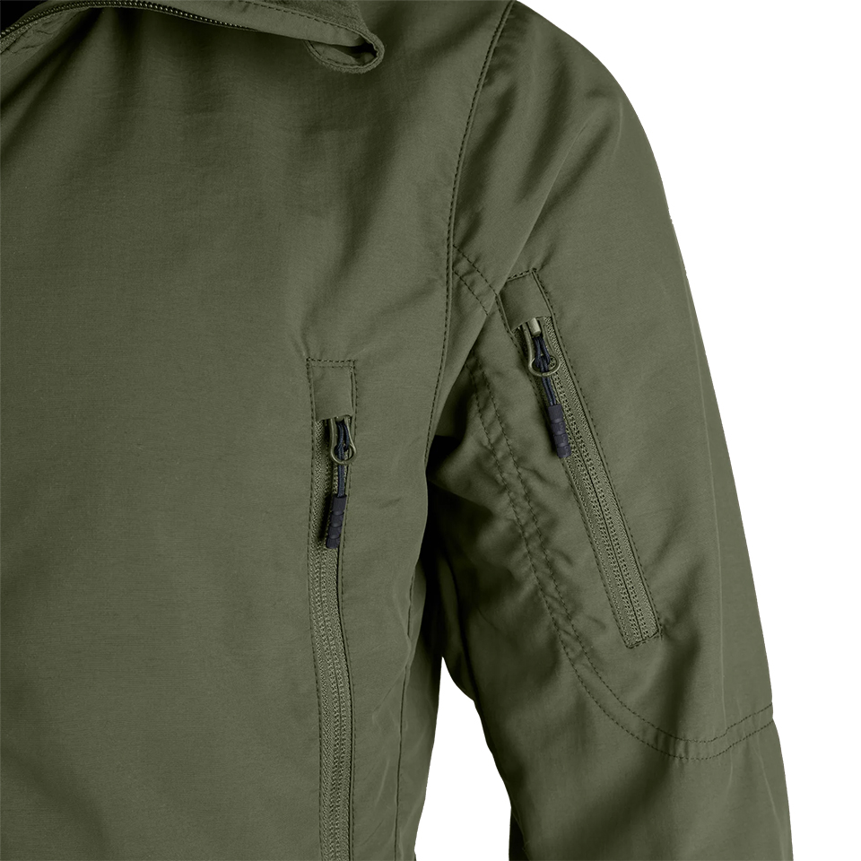 TAD barrel pull on Hand pockets, Upper Sleeve pocket, Back Panel pocket