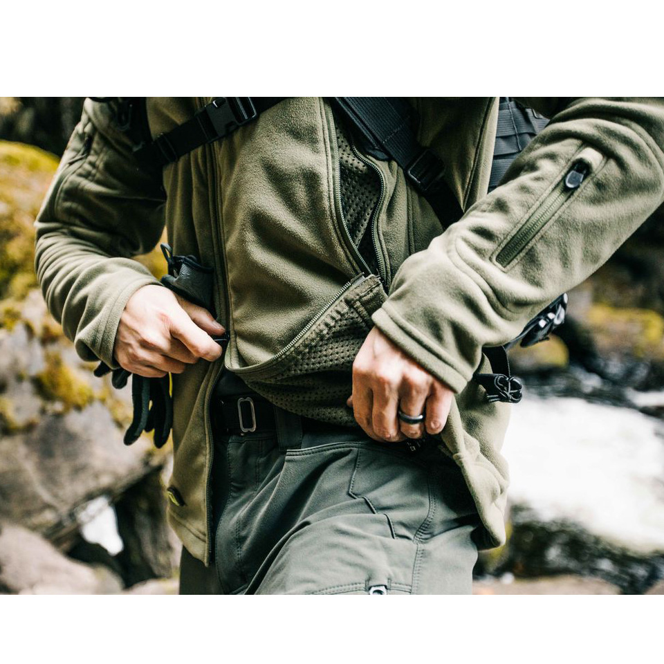 ダブルエントリーのハンターズポケットは、リュックサックやボディーアーマー、ハーネスの下からでもアクセスしやすい合理的な収納を提供します。