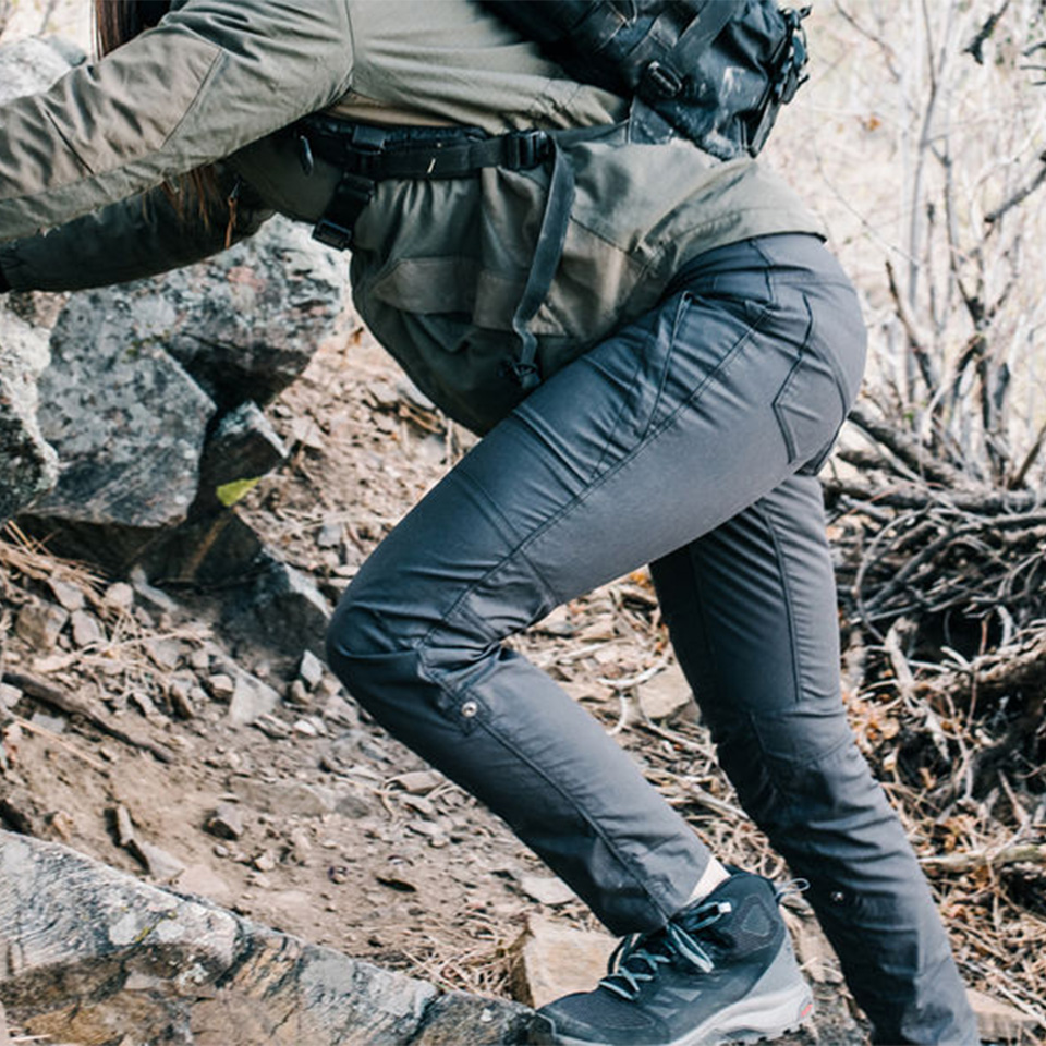Peregrine XCパンツは、薄型で人間工学に基づいたカーゴポケットに耐久性と動きやすく、快適なストレッチキャンバス。