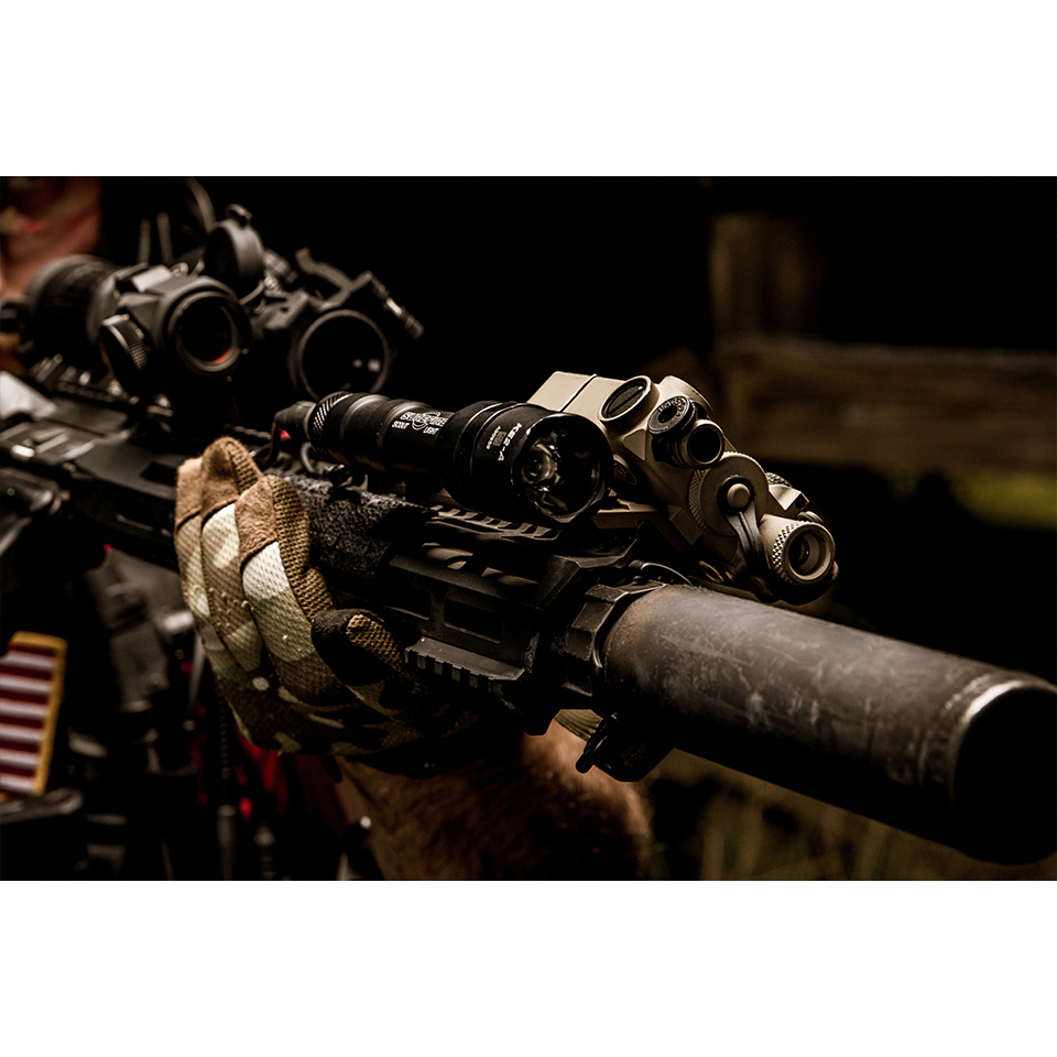 バックアップ用のアイアンサイトとフラッシュライトの両方を取り付けることができます。