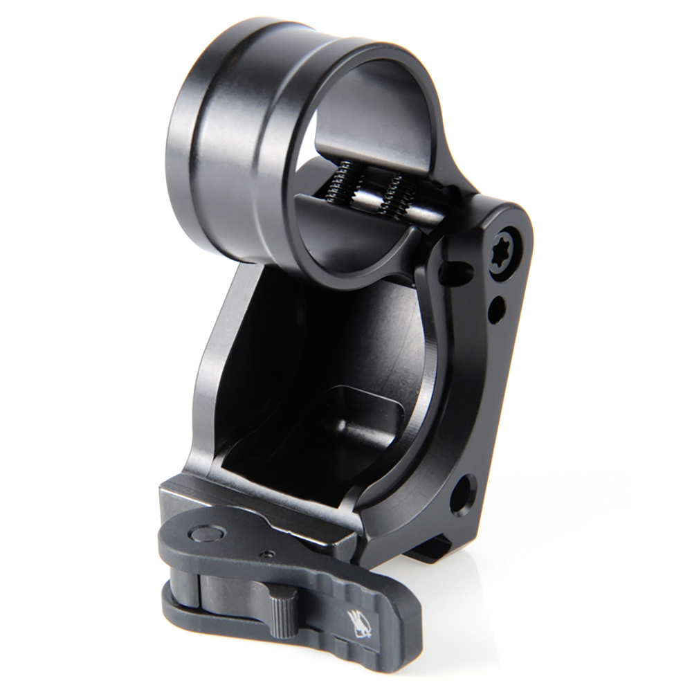また解除時にマグニファイアが銃器側面に露出しないため、大きな引っ掛かりの危険が生じる問題を解決します。